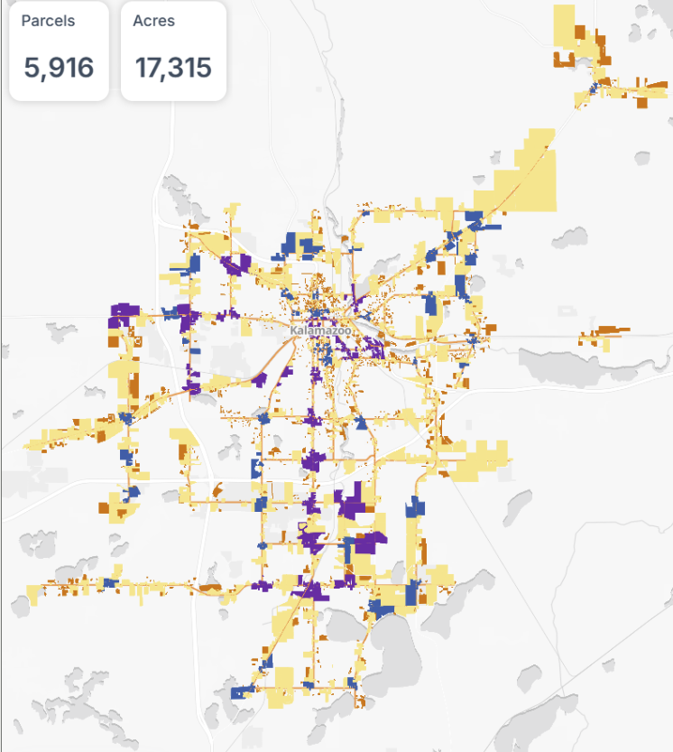 Different types of land generate very different levels of tax revenue relative to the infrastructure serving them. A taxable value per acre analysis often reveals that fully serviced corridors underperform compared to walkable, mixed-use areas nearby. This insight helps communities direct growth where infrastructure already exists and where reinvestment will do the most long-term good.