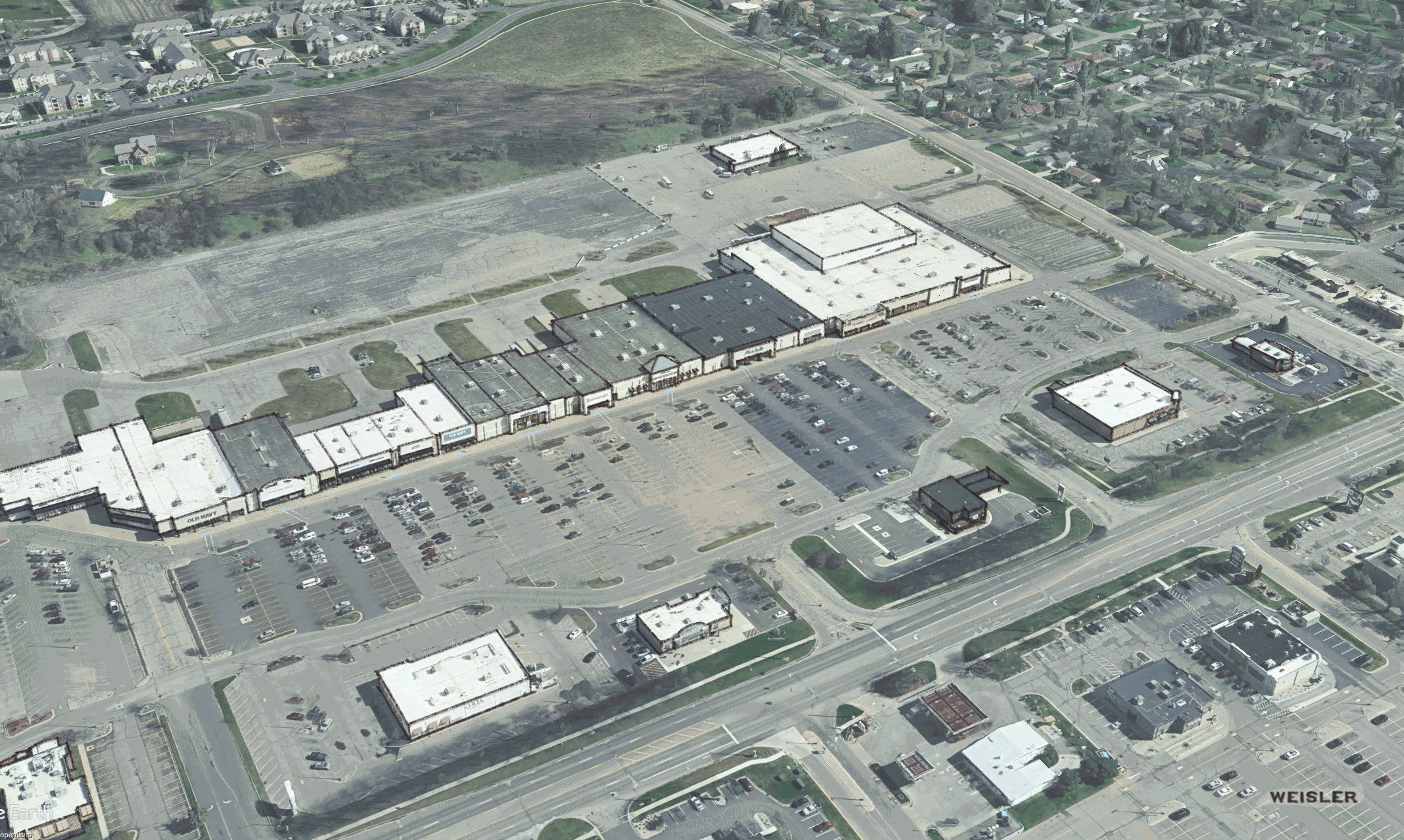 Underutilized Land — Vacant parcels, blighted strip centers, and empty parking lots sit on valuable corridors while contributing far less to the tax base than they could.